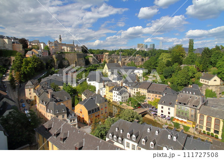 ベネルクスの一国ルクセンブルク大公国 世界文化遺産の首都の崖の上から望むグルントのサンジャン教会