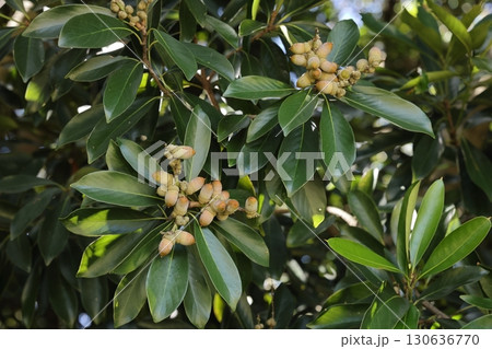 自然 植物 マテバシイ、日本固有種の常緑高木。秋には色付いた団栗が茂った葉の中に点々と見えます
