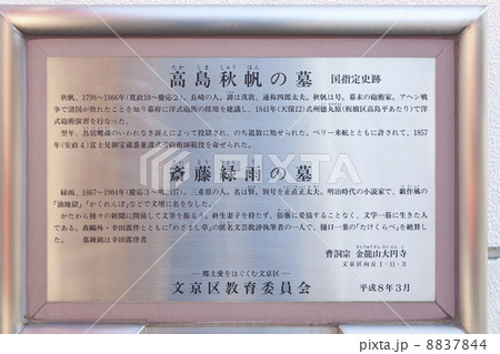東京都・金龍山大円寺の高島秋帆の墓と斉藤緑雨の墓の案内板(文京区教育委員会)