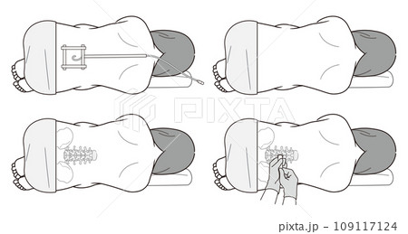 硬膜外麻酔・くも膜下麻酔・無痛分娩・帝王切開・麻酔・注射・麻酔科医・イラスト