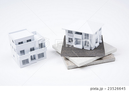 磁器タイルと白い住宅模型