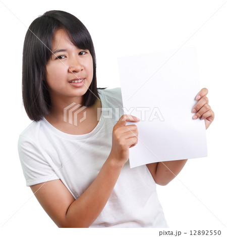 Woman showing empty blank paper
