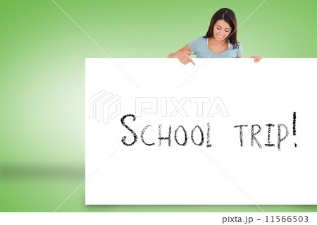 Composite image of businesswoman pointing somewhere