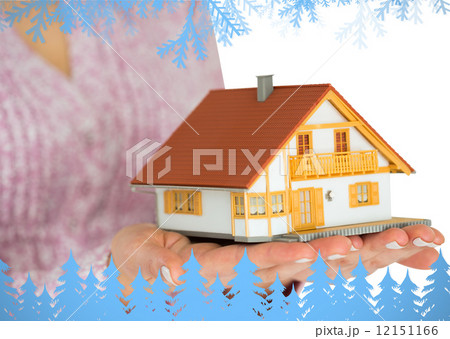 Hands showing a miniature model home
