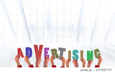 Composite image of hands showing advertising