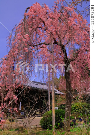 法金剛院(京都市右京区)に咲くしだれ桜の花