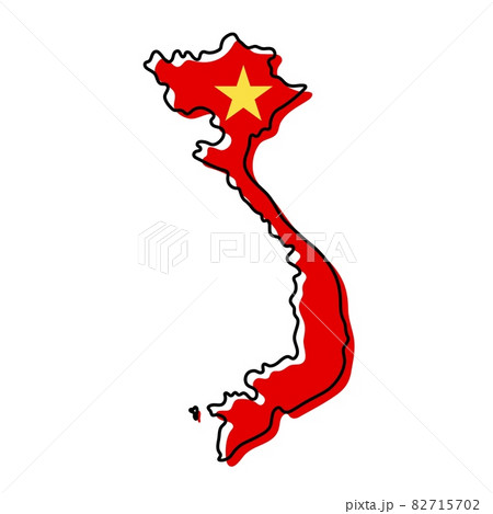 Stylized outline map of Vietnam with national flag icon. Flag color map of Vietnam vector illustration.