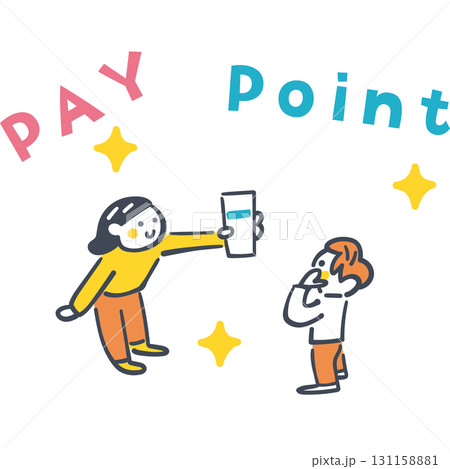 キャッシュレス決済とポイント還元を学ぶ子どもたち スマホと電子マネーのイラスト