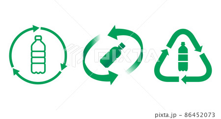 リサイクル, ペットボトル, プラスチックのグリーン緑色のアイコンベクターデザインイラストセット素材