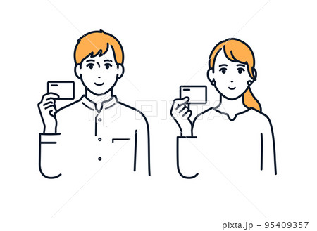 笑顔でカードを持つ若い男女のベクターイラスト素材