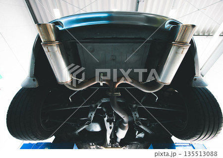 下から見たスポーツカーのマフラー