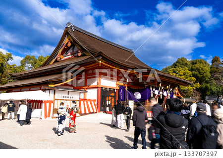 冬晴れの八坂神社 本殿の風景 京都府京都市東山区