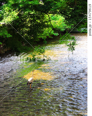 祗園白川で涼む蒼鷺さん
