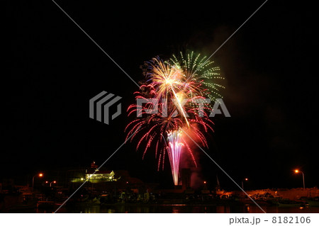 漁港風景 イカ釣り船 集魚灯