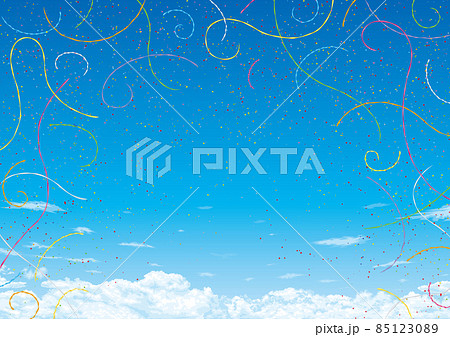 青空に舞うテープと紙吹雪 セレモニーのイメージ