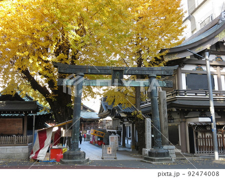 イチョウの黄葉が美しい12月の湯島天神(湯島天満宮)