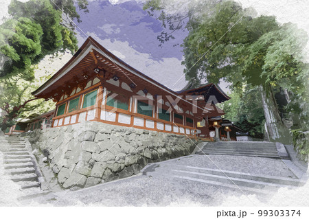 水彩画風 石上神宮 出雲建雄神社拝殿 奈良県天理市