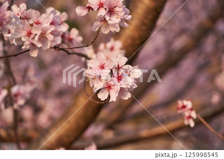 【神奈川県】夕日に照らされた満開の桜が綺麗な横浜の汽車道