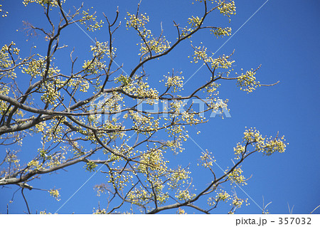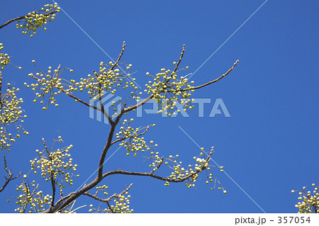 鮮黄色の小花のサンシュユ
