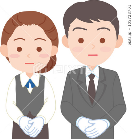 抑えた表情の白い手袋をはめた働く人_男女_真顔_上半身