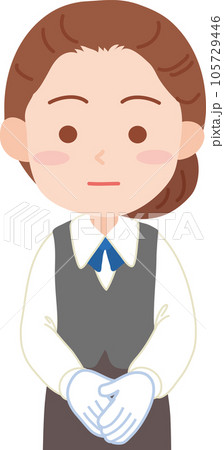 抑えた表情の白い手袋をはめた働く女性_真顔_上半身