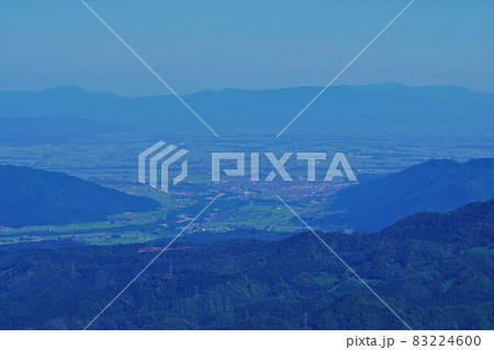 神室山からの月山と新庄市の街並み