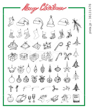 Hand Drawn Set of Lovely Merry Christmas Items