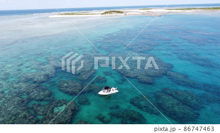 空撮-沖縄県チービシの神山島レジャー船ドローン撮影