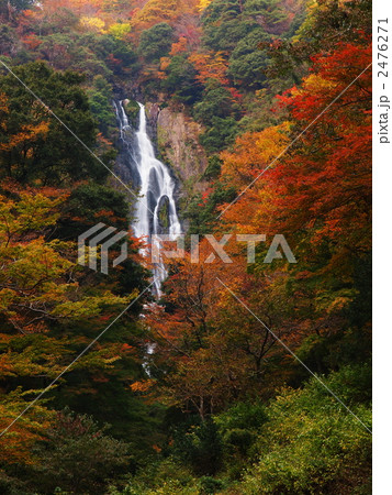 「日本の滝百選」神庭の滝(かんばのたき)と色とりどりな紅葉/「日本百景」/「国指定名勝」