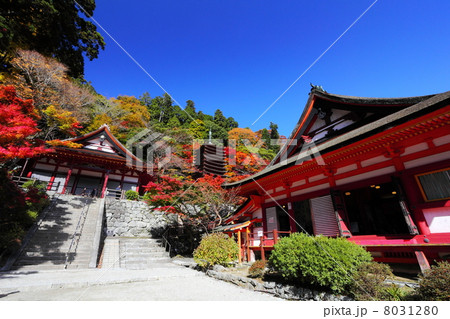 談山神社 紅葉に包まれる十三重塔と神廟拝所 横位置
