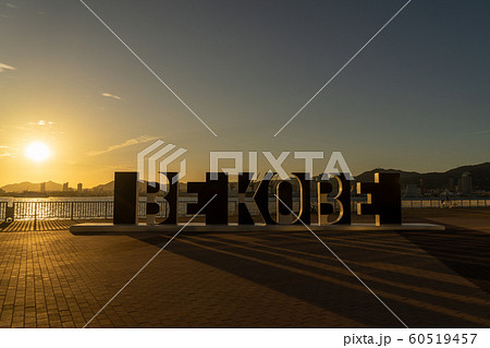 ポーアイしおさい公園の「BE KOBE」と夕焼け空