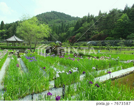 永沢寺花しょうぶ園 「花しょうぶと六連式水車」