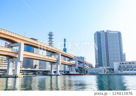 都市風景 神戸港震災メモリアルパークから望む建設中の高層マンション