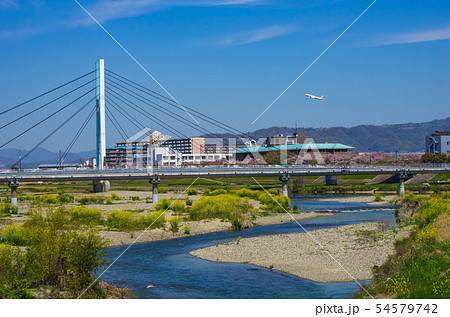 春の猪名川神津大橋・斜張橋と河川