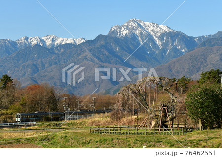 北杜市小淵沢町、神田の大糸桜・甲斐駒・中央本線