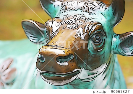 パステル調 ”旭川天満宮 撫で牛” イラストイメージ