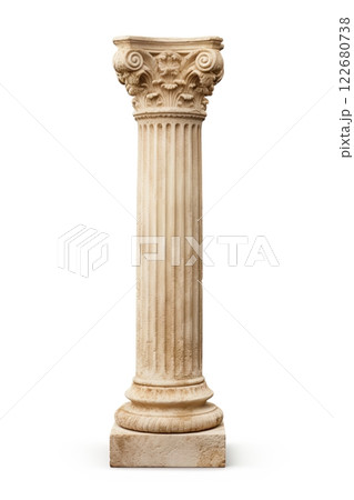 Ancient column or pillar. Ionic, Doric and Corinthian style architecture design. On white background. Generative Ai