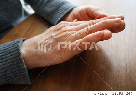 高齢者の手(老人の手)手のしびれ震え・手首の痛み・関節痛イメージ写真素材