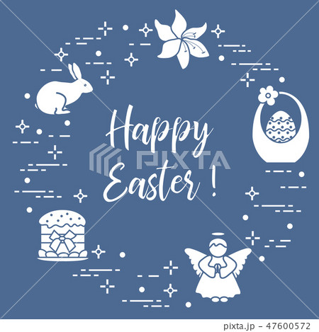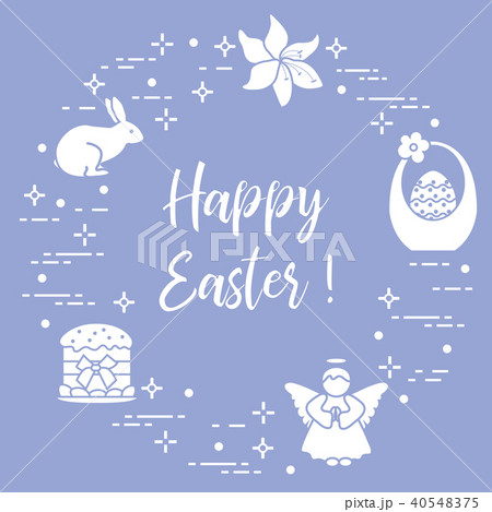 Easter cake, basket, eggs, rabbit, flowers, angel