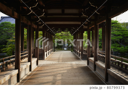 京都市 平安神宮神苑の屋根付き橋 泰平閣