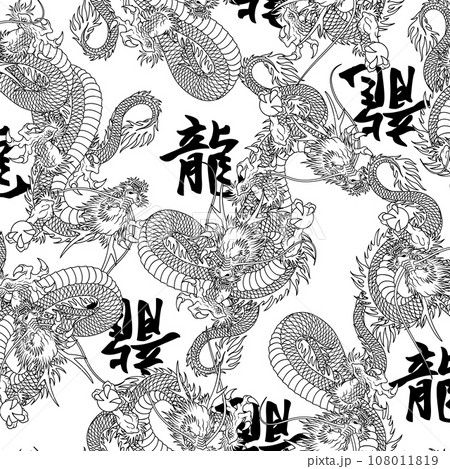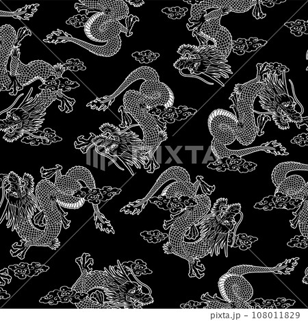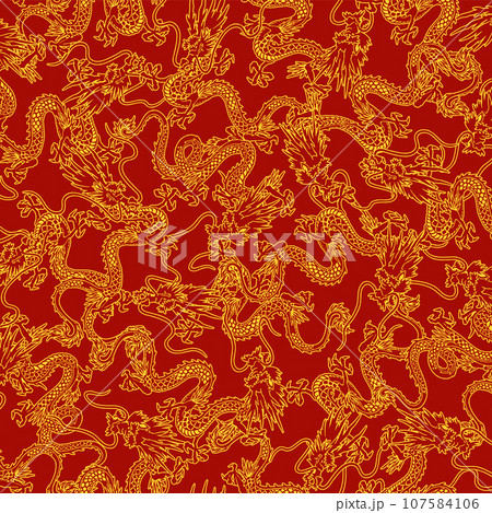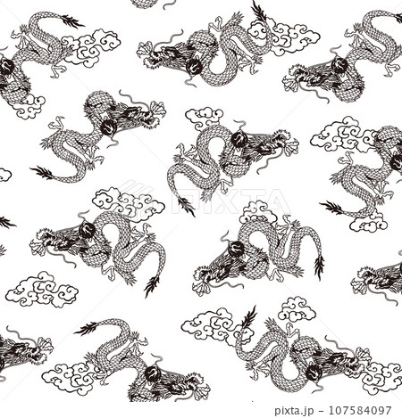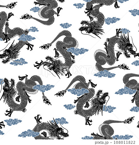 テキスタイルや背景に最適な龍の総柄,