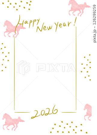 2026年・ピンクの馬と金色アクセントの年賀状テンプレート