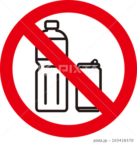 ペットボトル・缶などの禁止アイコン(資源ゴミ混入禁止 または 飲み物禁止)