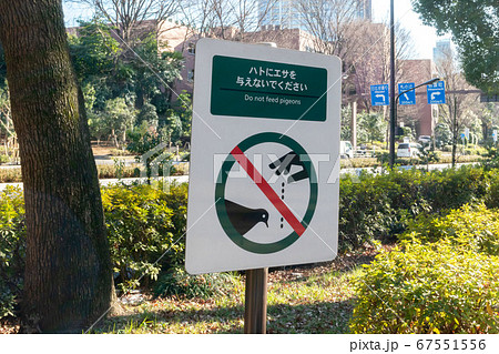 鳩の餌やり禁止看板