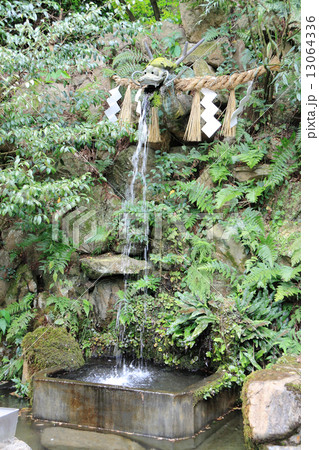 神社の手水舎 緑