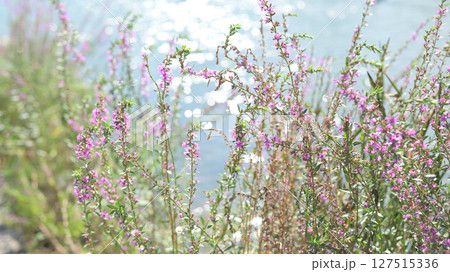 湿地の花・水辺に咲く禊ぎの花ミソハギ・横位置