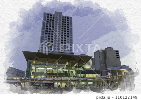 水彩画風 福井市街 JR福井駅西口 ハピリン 福井県福井市