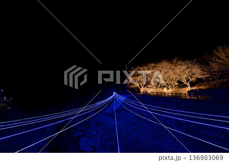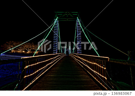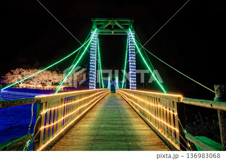 ライトアップされた道の駅ラ・フォーレ福寿の里にある吊り橋