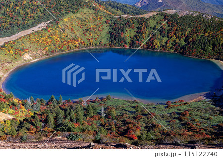 吾妻連峰・一切経山から見る紅葉の五色沼