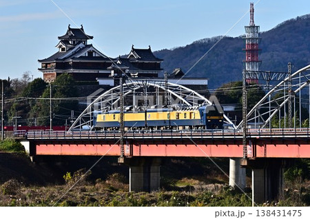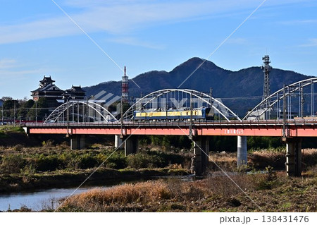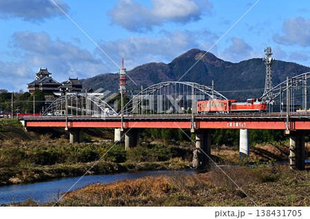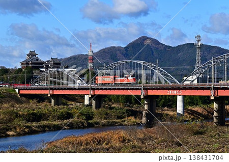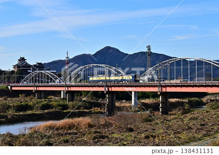 山陰本線からの車窓風景 福知山城(夕暮れ時)